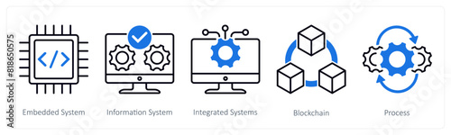 A set of 5 Industrial icons as embedded ystem, information system, integrated systems