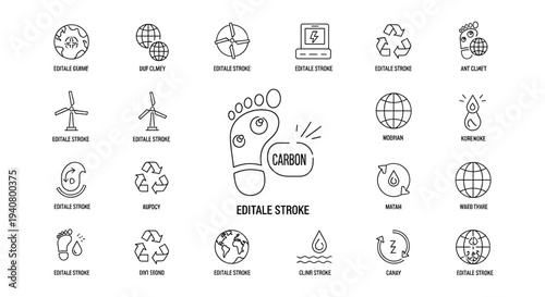 A set of eco-friendly vector icons and illustrations in a minimal flat design style