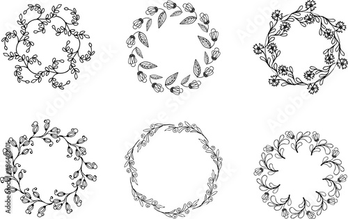 A set of flower frames. Rustic. Hand drawn. Floral isolated elements on a transparent background.