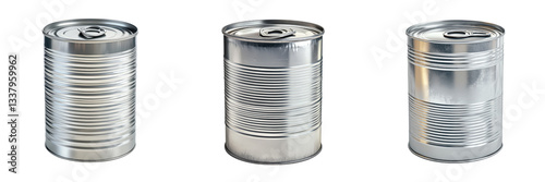 A Set of Tin Can with Reflective Surface and Realistic Shadows Isolated on Transparent Background