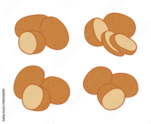 A set of various potato illustrations. Great for food illustrations, farm product labels, recipe design, kitchen graphics, and vegetable-themed packaging.
