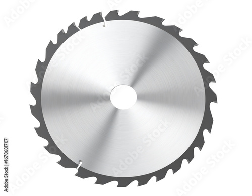 A shiny iron circular saw blade, isolated on a white background, symbolizing precision and industrial cutting.