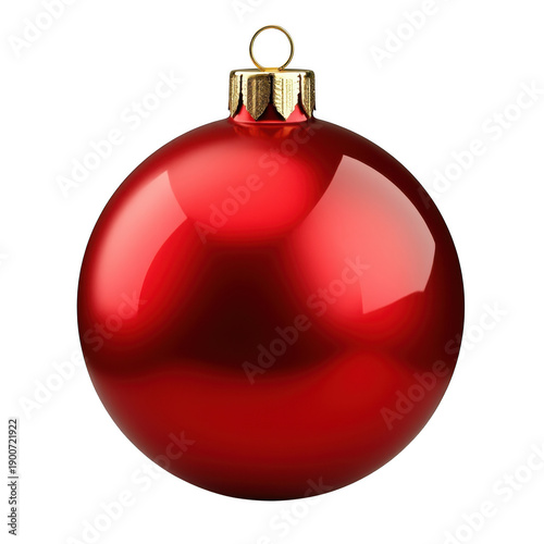 A shiny red christmas ball ornament hanging on a white background isolated on transparent background