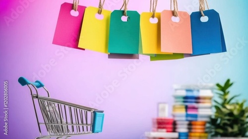 A shopping cart brimming with goods, showcasing tags that compare consumption tax rates against the perceived value in consumer decision-making.