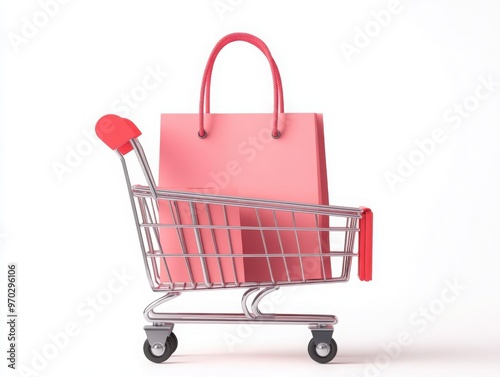 A shopping cart filled with Black Friday sale items, luxury brands, digital illustration, isolated on white background