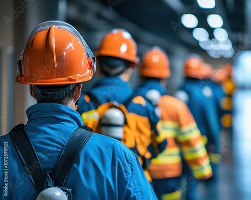 A shot of employees practicing fire evacuation procedures, Safety, Prepared and attentive