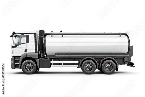 A side view of a white tanker truck designed for transporting liquids.