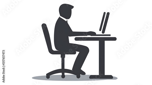 A silhouette figure is working on a computer at a desk