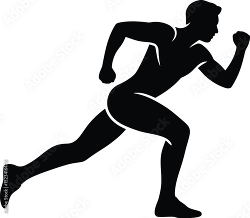 A silhouette of a man running with arm raised on a plain background in a dark color scheme image