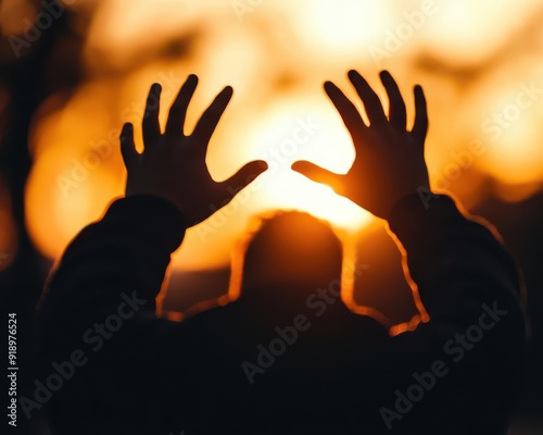 A silhouetted figure with raised hands against a stunning sunset, symbolizing hope, freedom, and self-expression.