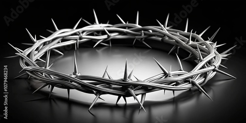 A Silver Crown of Thorns on a Black Background, 3D Render, Christian Symbol, Religion