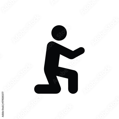 A simple black silhouette of a person kneeling with arms outstretched on a white background