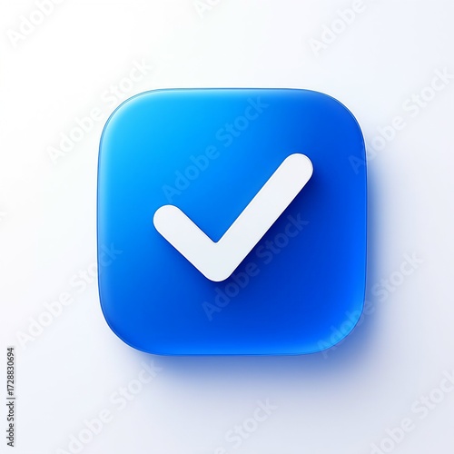 A simple blue square icon with a white checkmark symbolizing completion and success
