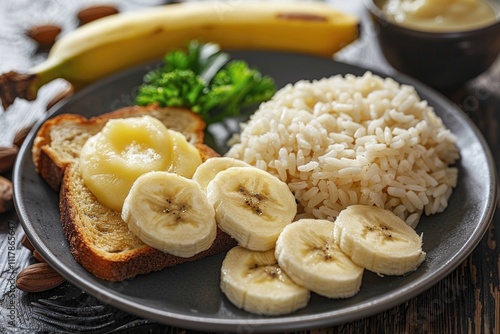 A simple breakfast plate featuring a mix of carbohydrates and fruit, suitable for use in lifestyle or food related contexts