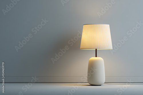 A simple lamp with a shade provides warm lighting against a minimalistic backdrop in a quiet room