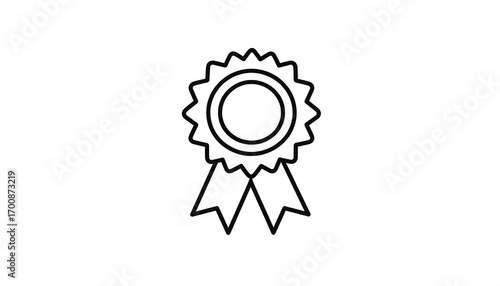 A simple, outlined illustration of a medal with a ribbon, conveying achievement and recognition.
