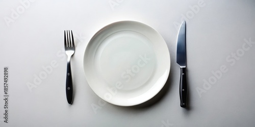 A Simple Table Setting Featuring a White Plate, a Fork, and a Knife on a Light Surface