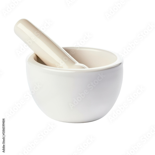 A simple white bowl with a polished silver spoon nestled inside on a light background ready for serving isolated on transparent background..