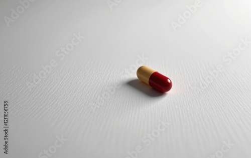 A single capsule pill resting on a clean white surface, casting a subtle shadow.