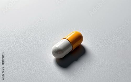 A single capsule pill resting on a clean white surface, casting a subtle shadow.