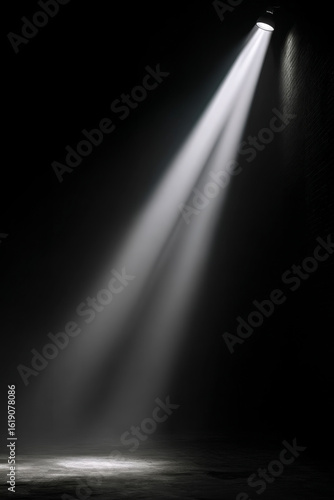 A single beam of light shines down from the top, illuminating everything below it in a soft white glow against an all-black background.