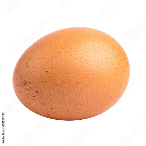 A single brown egg, isolated on a black background, with a slightly mottled shell