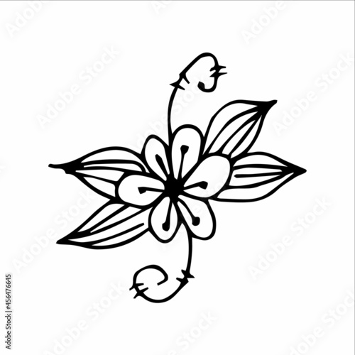 A single element is a flower drawn by hand. Vector black and white doodle illustration for logo, design and postcards.