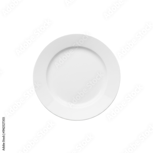 A single empty white porcelain plate centered on a seamless surface with soft diffused lighting creating a clean minimalist atmosphere