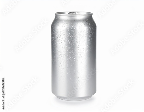 A single, full, metallic aluminum beverage can, isolated on a white background.