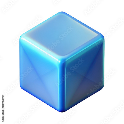 A single glossy blue cube with rounded edges isolated on transparent background