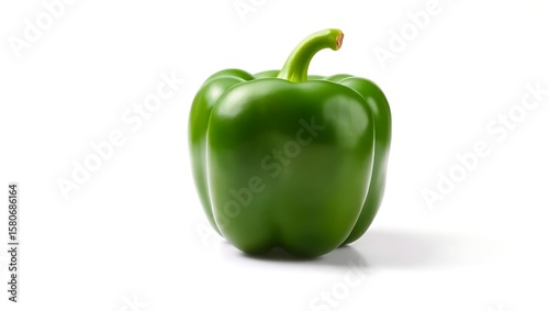 A single green bell pepper isolated on a white background in a studio shot with soft lighting