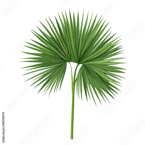 A single green palm frond isolated on black background tropical plant nature foliage leaf