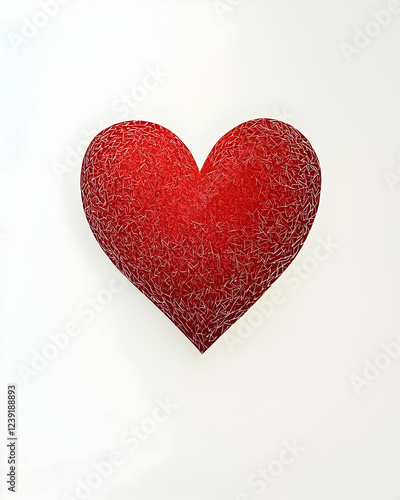 A single heart-shaped hand-cut paper piece on a white background against pure white background