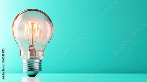 A single illuminated light bulb set against a teal background, representing ideas or innovation with a minimalist and contemporary artistic touch.
