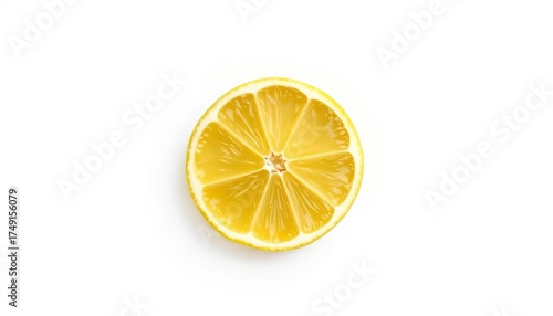 A single, juicy lemon slice isolated on pure white, ample copy space, slice, cocktail