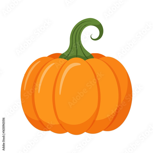 A single orange pumpkin with a green stem on a white background.