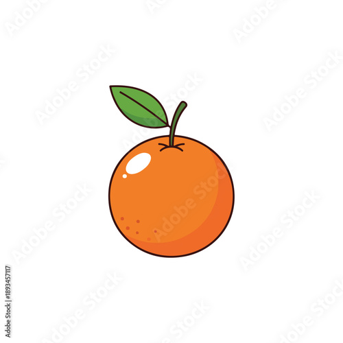 A single orange with a small green leaf