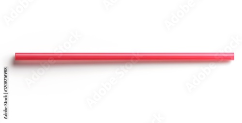 A Single Pink Plastic Straw Isolated On White