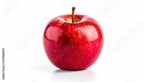 A Single Ripe Red Apple with Water Droplets on its Surface Isolated on a White Background Studio Shot
