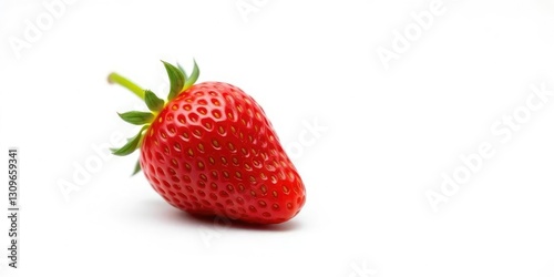 A single ripe strawberry, vibrant red, isolated on pure white background, ripe, bright