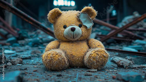 A single stuffed bear covered in dust