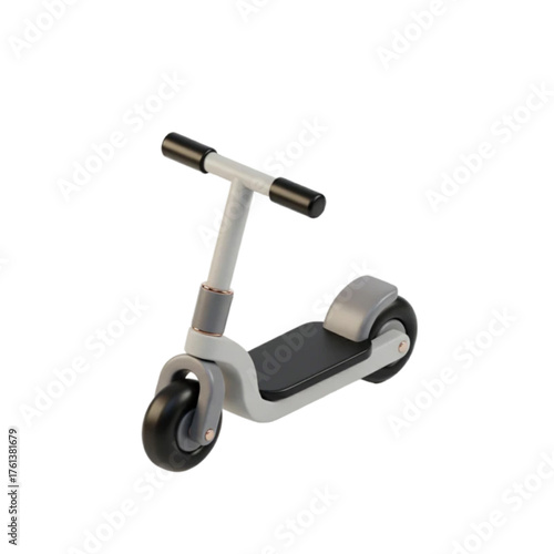 A sleek 3D render of a modern electric scooter showcasing minimalist design for urban personal mobility and eco-friendly transportation