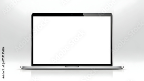 A sleek and modern laptop with a blank white screen, perfect for showcasing your website or application design in a professional and engaging way right here.