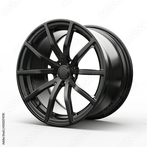A sleek black alloy wheel designed for automotive use, showcasing modern styling and performance. isolated on white background
