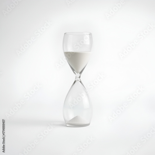 A sleek hourglass sits alone on a white background, emphasizing its elegant design and timeless nature.