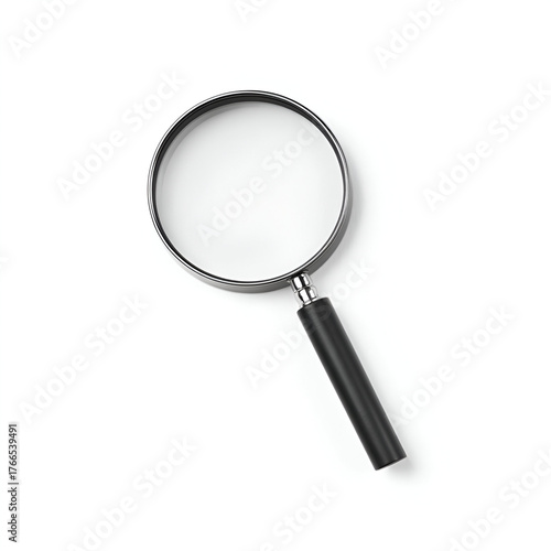 A sleek magnifying glass isolated on a white background, symbolizing scrutiny, investigation, and attention to detail.