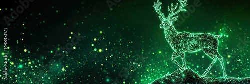 A sleek, metallic reindeer with sharp, angular features, standing on a mountain peak made of polished gold.