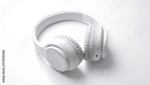 A sleek, white headphone rests on a plain, bright background, showcasing its smooth curves and simple design.
