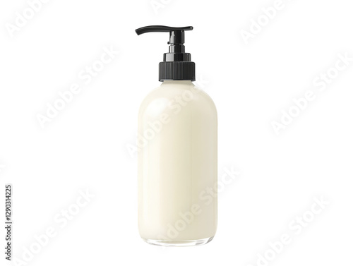 A sleek, white lotion bottle with a black pump dispenser, perfect for dispensing creamy skincare products.