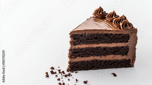 A Slice of Chocolate Cake with Swirls of Frosting